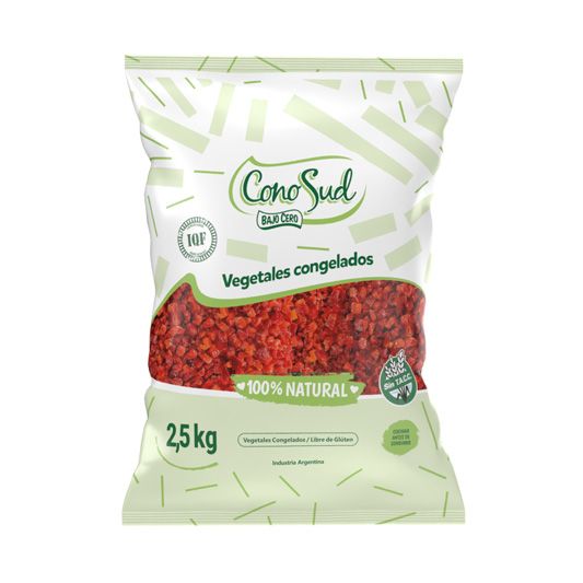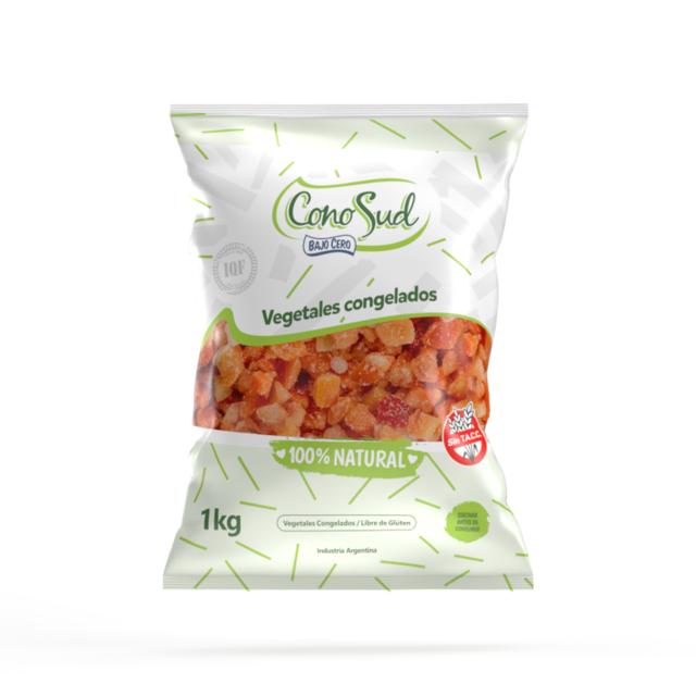 POR KG. VEGETALES CONGELADOS IQF, LIBRES DE GLÚTEN, SIN TACC. INGREDIENTES: Tomate, pimiento rojo en cubos, cebolla en cubos y zanahoria en cubos.
