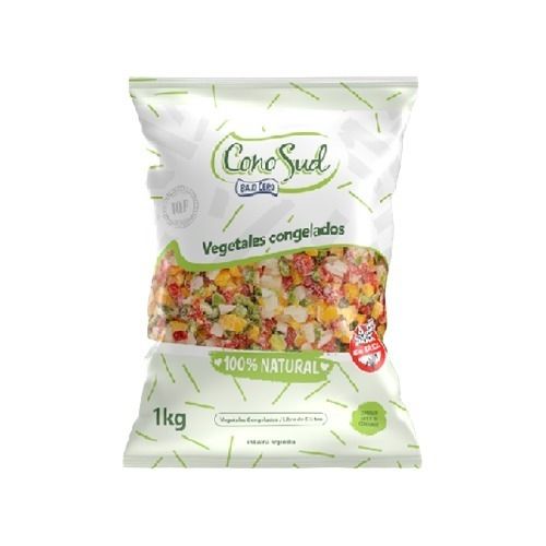 PESO: 1 KG. VEGETALES CONGELADOS IQF, LIBRES DE GLÚTEN, SIN TACC. INGREDIENTES: brocoli, chaucha, morrón rojo, cebolla, granos de choclo, zanahoria en cubos y champignon en fetas.