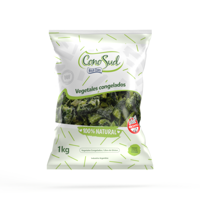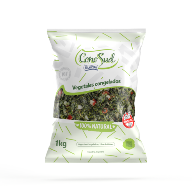 POR KG. VEGETALES CONGELADOS IQF, LIBRES DE GLÚTEN, SIN TACC. INGREDIENTES: Espinaca, cebolla y pimientos