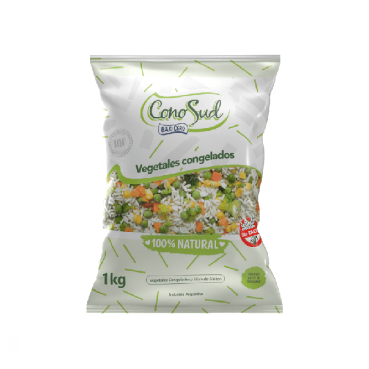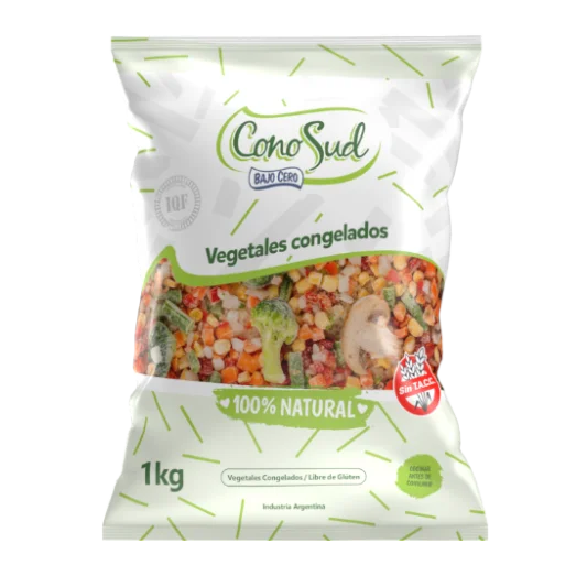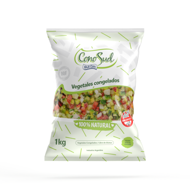 PESO: 1 KG. VEGETALES CONGELADOS IQF, LIBRES DE GLÚTEN, SIN TACC.